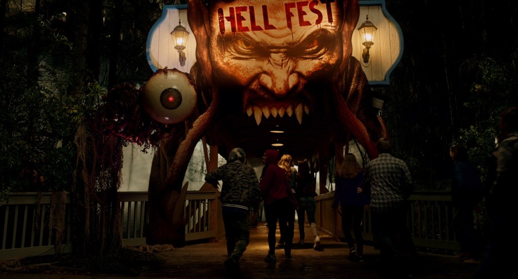 Hell Fest was directed by Gregory Plotkin, written by Seth M. Sherwood, Blair Butler and Akela Cooper and stars Amy Forsyth, Reign Edwards, Roby Attal, Bex Taylor-Klaus, Christian James, Matt Mercurio, Stephen Conroy, and Tony Todd. It’s about a group of friends touring a horror-themed amusement park, only for them to find that one of the scare actors isn’t a performer like they thought.
