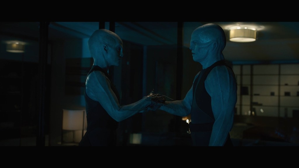The Drama: As for the examination of how the unnamed program shapes the drama, it’s skin deep and written thin. Hurwitz decides to push the emotion aside for most of the runtime in lieu of prosthetics and tries to reintroduce it in the last 20 minutes to a significantly dimmed effect.
