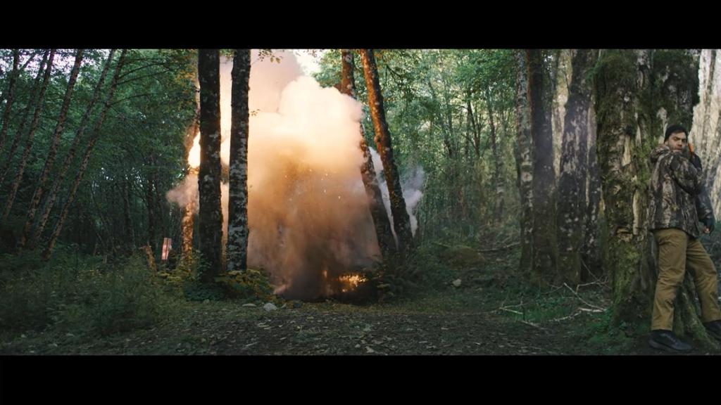 Leeway can certainly be given for a low-budget effort’s necessary delay in action, but said action should bring a bit more fury to compensate for the wait. Hunting Games doesn’t have much of a payoff in that regard; though it does start with a bang, in slow motion for maximum effect, it’s not a big one, nor does it do literally anything to any of the characters, including putting them in danger of the blast radius. At least it’s something.