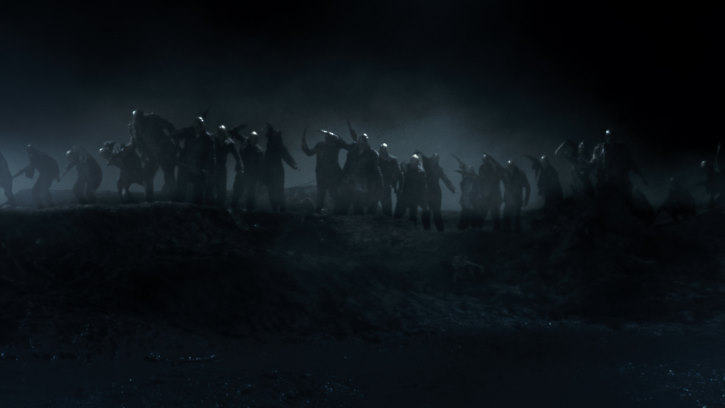 Opening with a trench fight that plays out largely like one would equate to World War One does a good job of filling in the viewer with the kind of weaponry and tactics this version of the world is currently utilizing. Movement is sparse out of the need to survive; juxtaposing sedentary combat with the unstoppable rush of the titular creatures helps alleviate the familiarity of it all. While it still ends up residing in the realm of cliche, there’s a spice to it because of the third party involved.