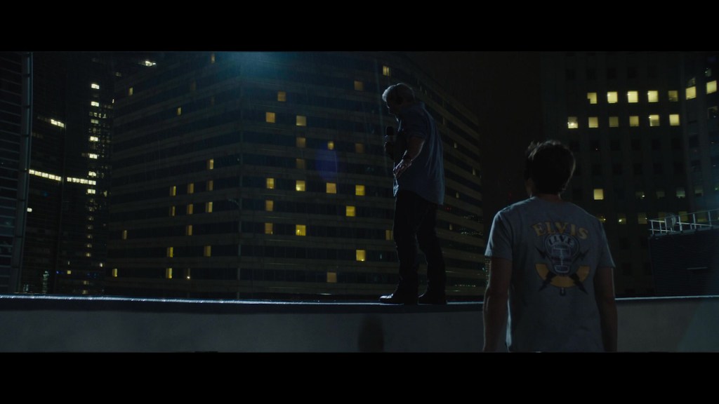 As the host enters the building, he’s met with an unhinged listener who thinks he’s the second coming of Christ. It’s an unusual sequence that shows Elvis’s ability to de-escalate a problem on the fly. The man wants to get his message out and is upset the showrunner doesn’t know him, which Elvis quickly catches onto, and spontaneously comes up with a peaceful resolution to the problem, which itself was bordering on bloodshed mere moments into its beginning.