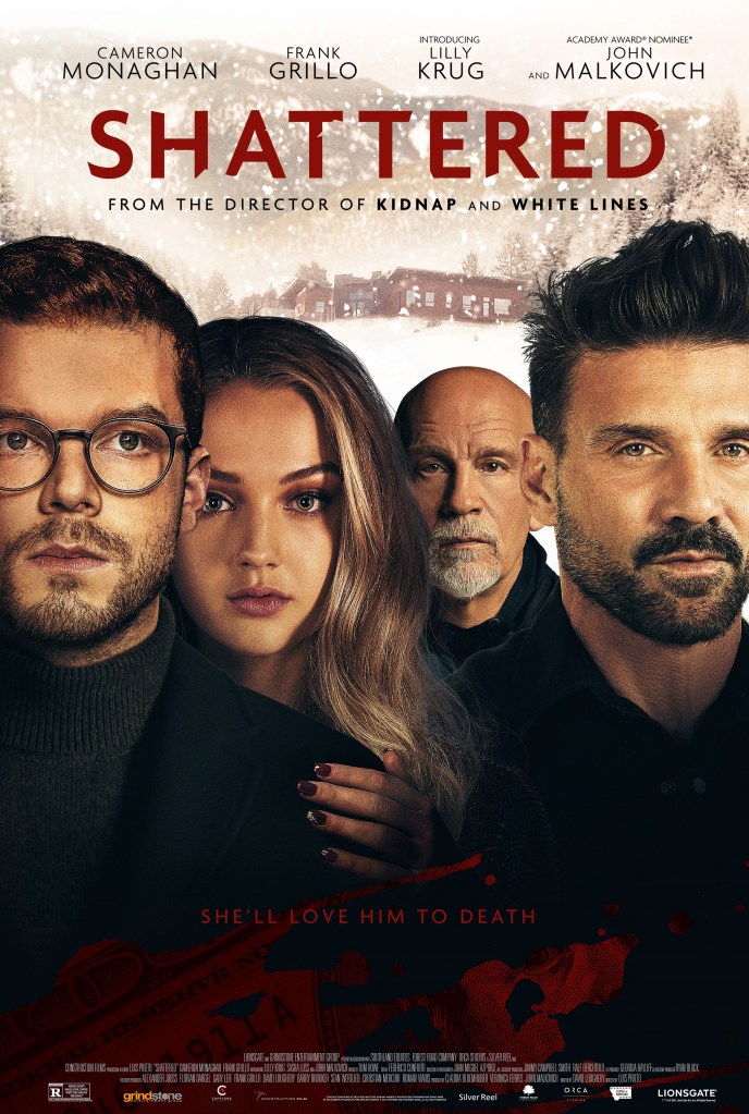 Shattered was directed by Luis Prieto, written by David Loughery, and stars Cameron Monaghan, Lilly Krug, John Malkovich, Ash Santos, Sasha Luss, and Frank Grillo. It follows a man as he fights his crazed seductress for survival.