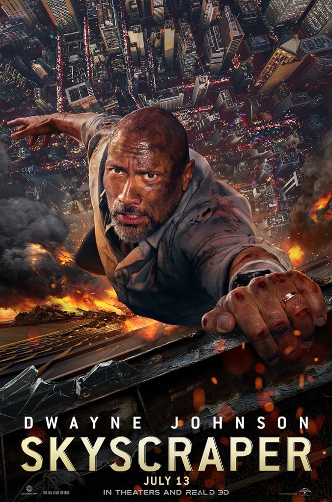 Skyscraper was directed and written by Rawson Marshall Thurber and stars Dwayne Johnson, Roland Moller, Chin Han, Neve Campbell, Byron Mann, Hannah Quinlivan and Pablo Schreiber. It’s about a security guard fighting his way through a flaming skyscraper to save his family from criminals.