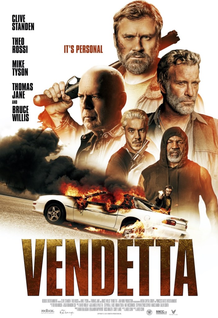 Vendetta was directed and written by Jared Cohn and stars Clive Standen, Theo Rossi, Lauren Buglioli, Kurt Yue, Cabot Basden, Bruce Willis, and Thomas Jane. It follows a father as he’s roped into a battle against a gang after getting vengeance for his murdered daughter.
