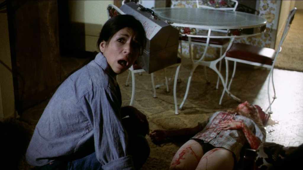 With a reputation that stems from its time being banned in the UK, surprisingly, the makeup effects by Edward Ternes aren’t all that special, with most of the action taking place out of view and ending up with blood coating the surrounding area. There’s a few shots of a hammer hitting a head, but Donnelly’s film is a rather tame one in its violence as compared to its usage of nudity. That skin is just a distraction from the deficiencies of the rest of the film, which lacks the funds to set itself apart.