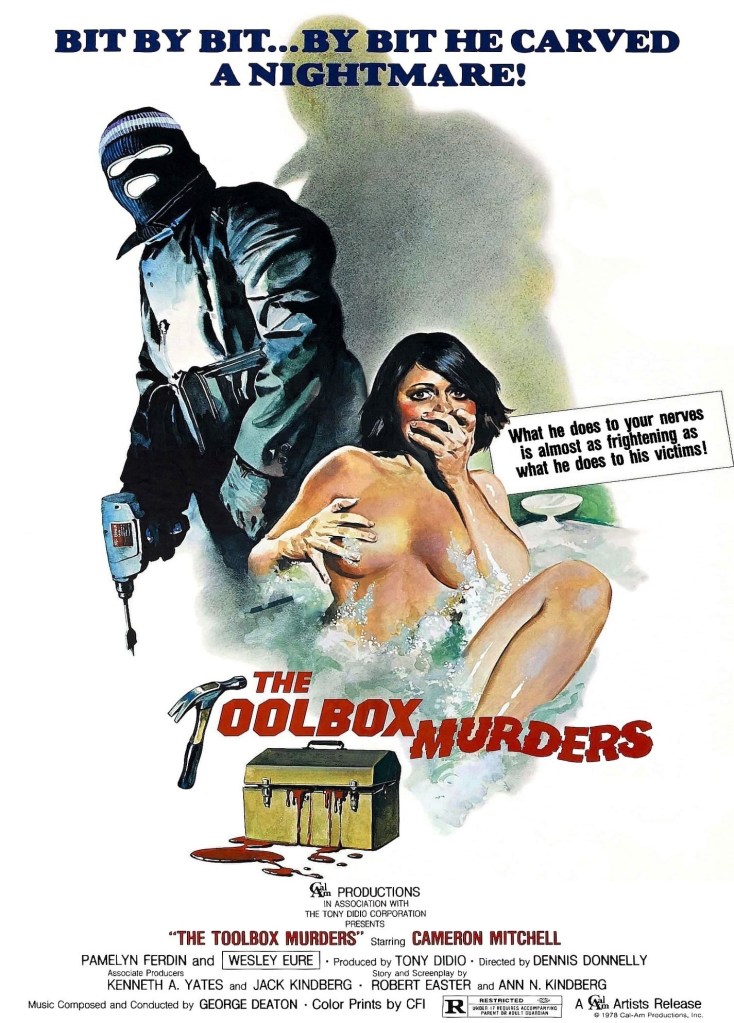 The Toolbox Murders was directed by Dennis Donnelly, written by Neva Friedenn, Robert Easter, and Ann Kindberg, and stars Nicolas Beauvy, Wesley Eure, Cameron Mitchell, Tim Donnelly, Don Diamond, Aneta Corsaut, and Pamelyn Ferdin. It follows two men as they investigate the recent murders of women in their apartment complex.