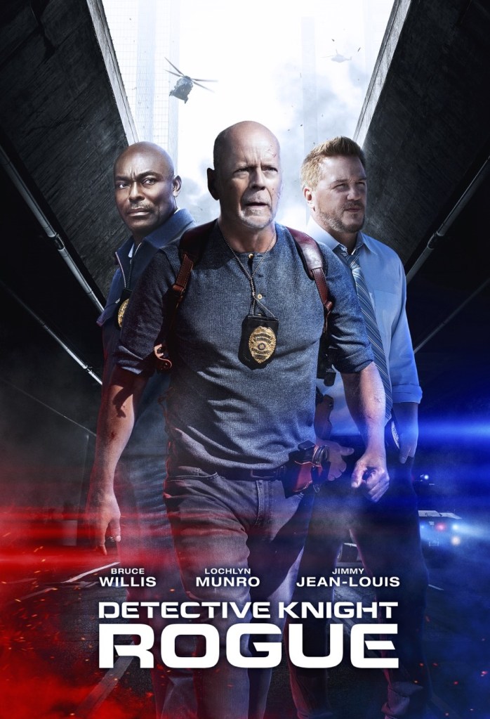 Detective Knight: Rogue was directed by Edward Drake, co-written by Drake and Corey Large, and stars Beau Mirchoff, Bruce Willis, Trevor Gretzky, Keeya King, Jimmy Jean-Louis, Michael Eklund, Corey Large, and Lochlyn Munro. It follows a group of masked criminals from California to New York on Halloween with a cop in pursuit with hopes of bringing them down.