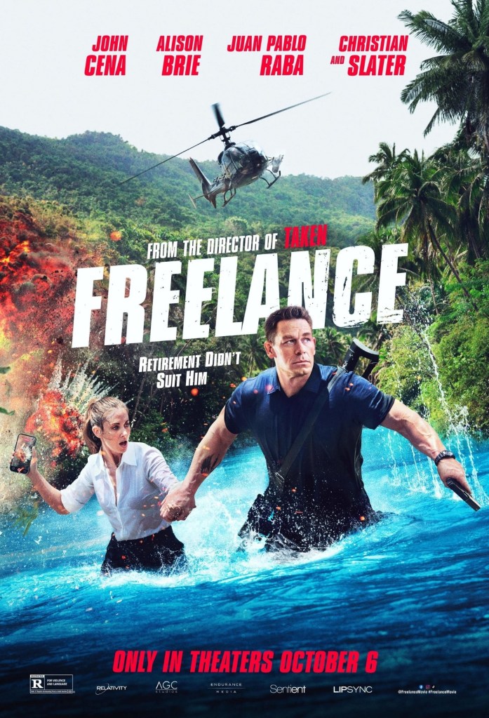 Freelance was directed by Pierre Morel, written by Jacob Lentz, and stars John Cena, Alison Brie, Juan Pablo Raba, Marton Csokas, Christian Slater, and Alice Eve. It follows a bodyguard and a journalist as they escort a dictator out of his native country when a coup topples the latter’s regime, and the former’s interview plans.